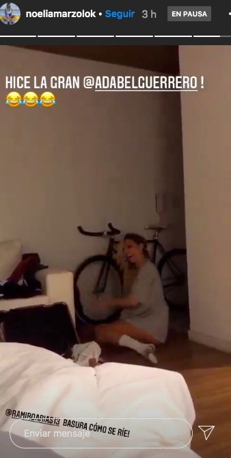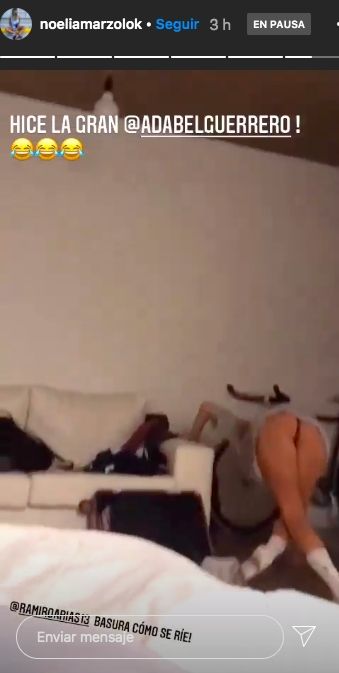 Noelia y Ramiro se tomaron con mucho humor el accidente y lejos de esconderlo, la rubia lo compartió en las redes asegurando querer imitar a Adabel Guerrero: "Hice la gran Adabel Guerrero", quien intentó lo mismo en el Cantando 2020 y terminó igual que ella.