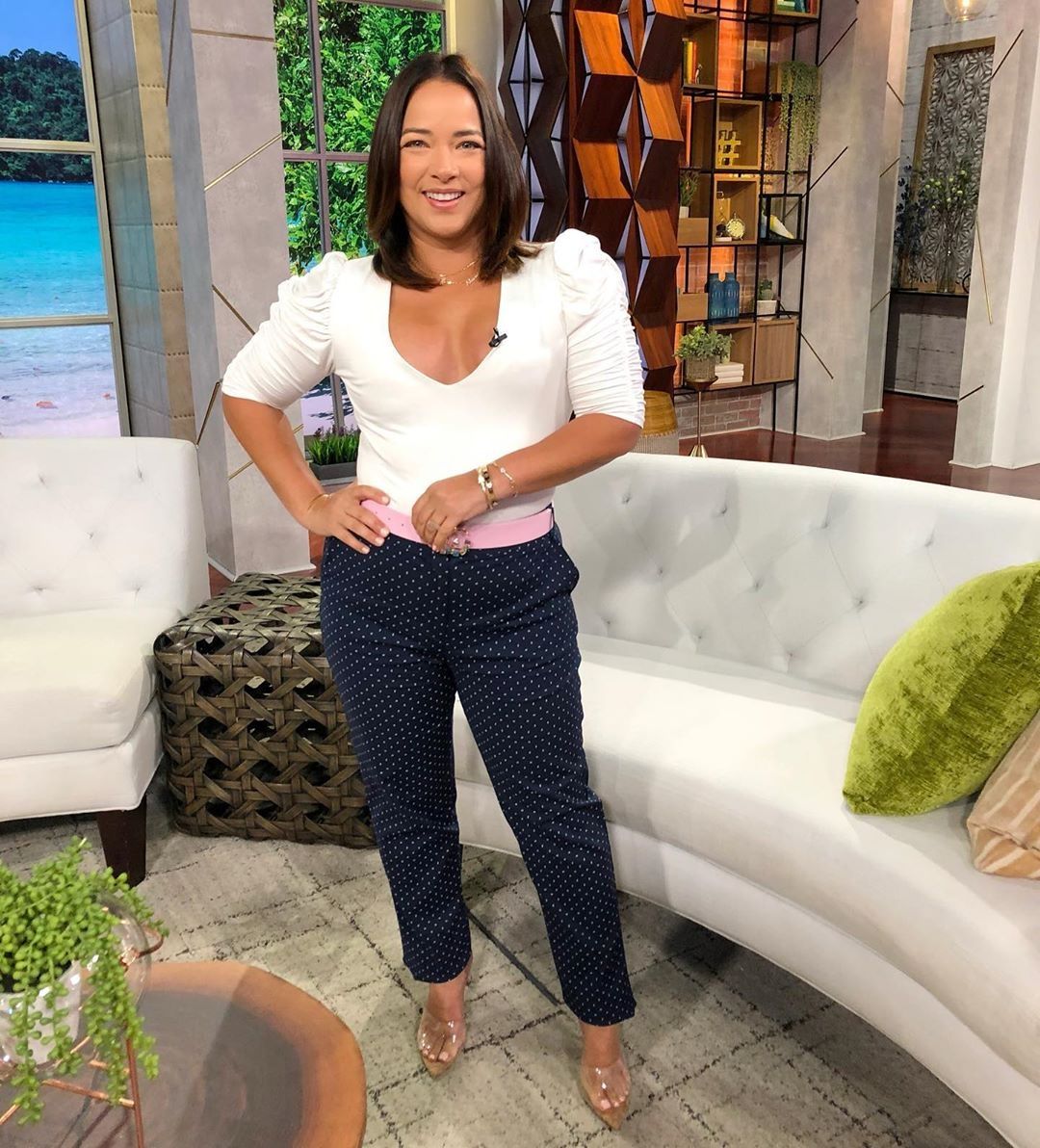 Como es costumbre las redes sociales del programa “Un Nuevo Día”, donde Adamari López es co-conductora” compartieron su look del día. En la pic se puede ver a la latina luciendo una blusa blanca y un pantalón largo con oscuro con lunares blancos.
