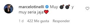 Rápidamente, Marcelo se expresó con orgullo: "Muy bomba... ¡Y muy seria!", expresó junto a un montón de emojis.