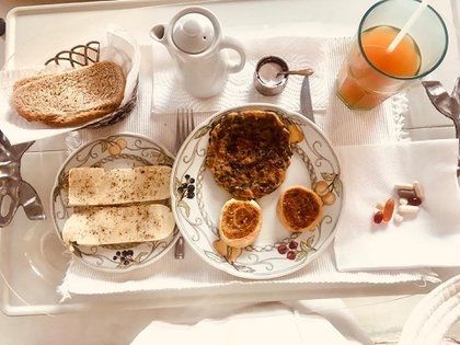Pero claro, los resultados no son mágicos. Y eso quiso saber Ángel de Brito, quien el fin de semana pasado compartió una foto de un desayuno de Nacha, en el que se veían un jugo, una tostada y 11 pastillas.