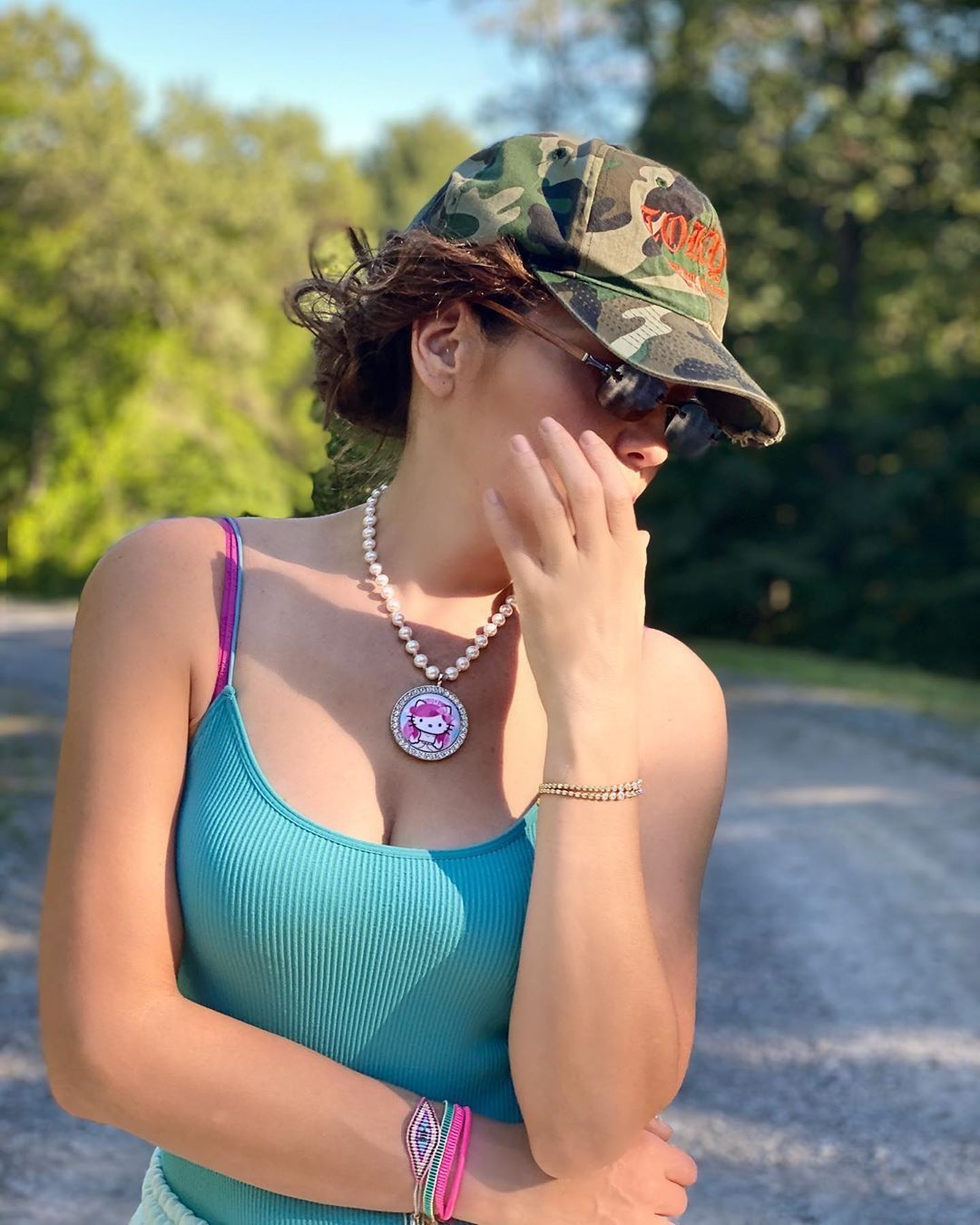 En las últimas horas, Thalía compartió en su cuenta oficial de Instagram una veraniega fotografía que se llevó todas las miradas. En la pic se puede ver a la latina luciendo una musculosa y un jogging de color turquesa, lentes de sol, collar de perlas de Kittie y una gorra estilo militar.