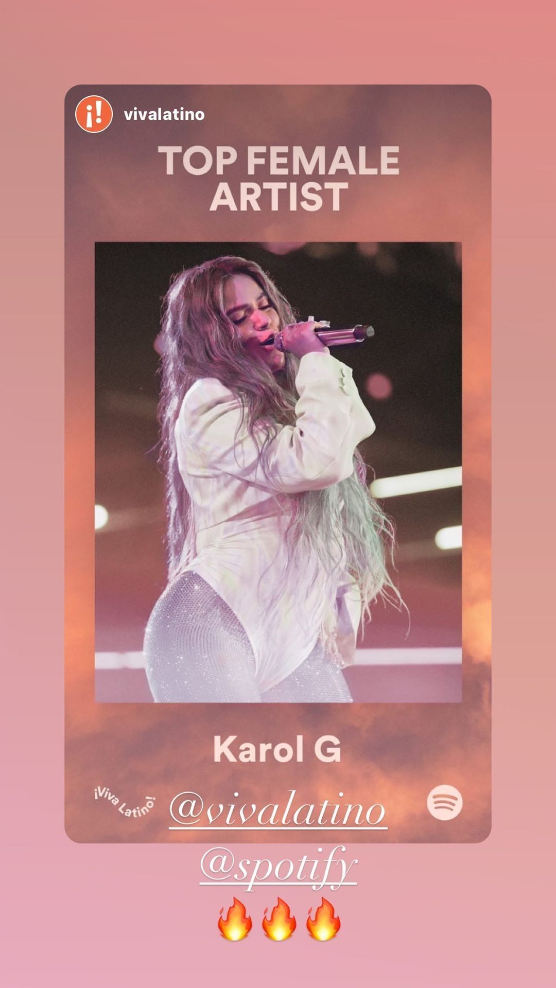 Por su parte hace algunas horas atrás la hermosa cantante compartió una imagen en Instagram donde presumió que es una de las artistas femeninas más escuchadas del continente por lo que causó los celos de su novio que no está en ese Top.