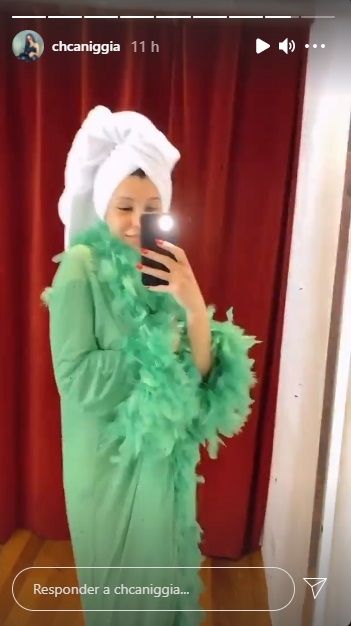 En las últimas horas, Charlotte llamó la atención de todos con un divertido baile frente al espejo con un particular look. La mediática de 27 años de edad posó con una bata de plumas verdes y una toalla en su cabeza como si recién saliera de la ducha. Más de uno quedó boquiabierto al verla.