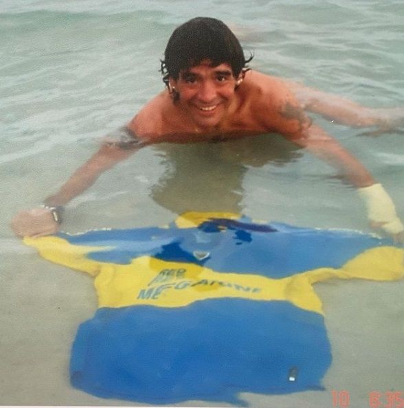 En la instantánea se lo ve al Diez sonriendo en el mar con una camiseta de Boca. La imagen fue acompañada por un emotivo mensaje. "Bajá un ratito, solo un abrazo. Prometo que dejo que te vuelvas, pero necesito un abrazo tuyo y tu ‘negra papá está acá'. Te extraño cada vez que decido respirar para seguir viviendo”, redactó la mamá de Benjamín.