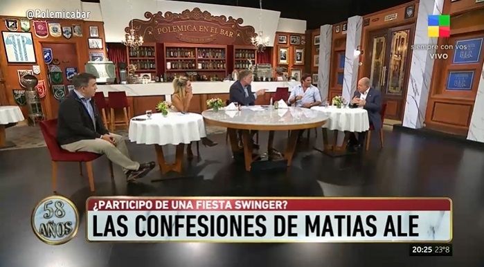 Una vez más Matías Alé volvió a dar de qué hablar con declaraciones sobre su intimidad. Invitado a Polémica en el bar, el programa que produce Gustavo Sofovich en la pantalla de América TV, mientras se hablaba con humor sobre la fiesta swinger que fue desarmada el pasado fin de semana en un operativo policial en Mar del Plata, el actor sorprendió a todos con su revelación.