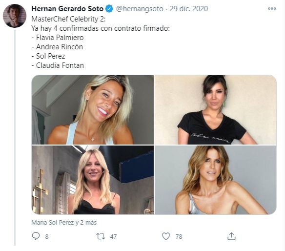 Recordemos que MasterChef Celebrity tendrá su gran final el 18 de enero. Y comenzarán a grabar la segunda temporada en febrero, para luego tener su estreno en marzo.