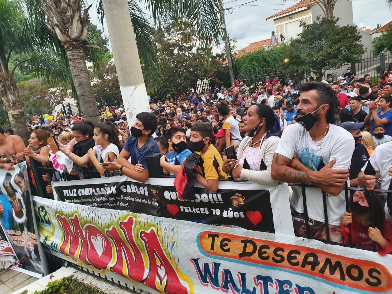 Carlos La Mona Jiménez cumplió 70 años y sus seguidores decidieron autoconvocarse en la puerta de su casa para hacerle llegar todo su afecto en un día tan especial para la figura más importante del cuarteto cordobés.