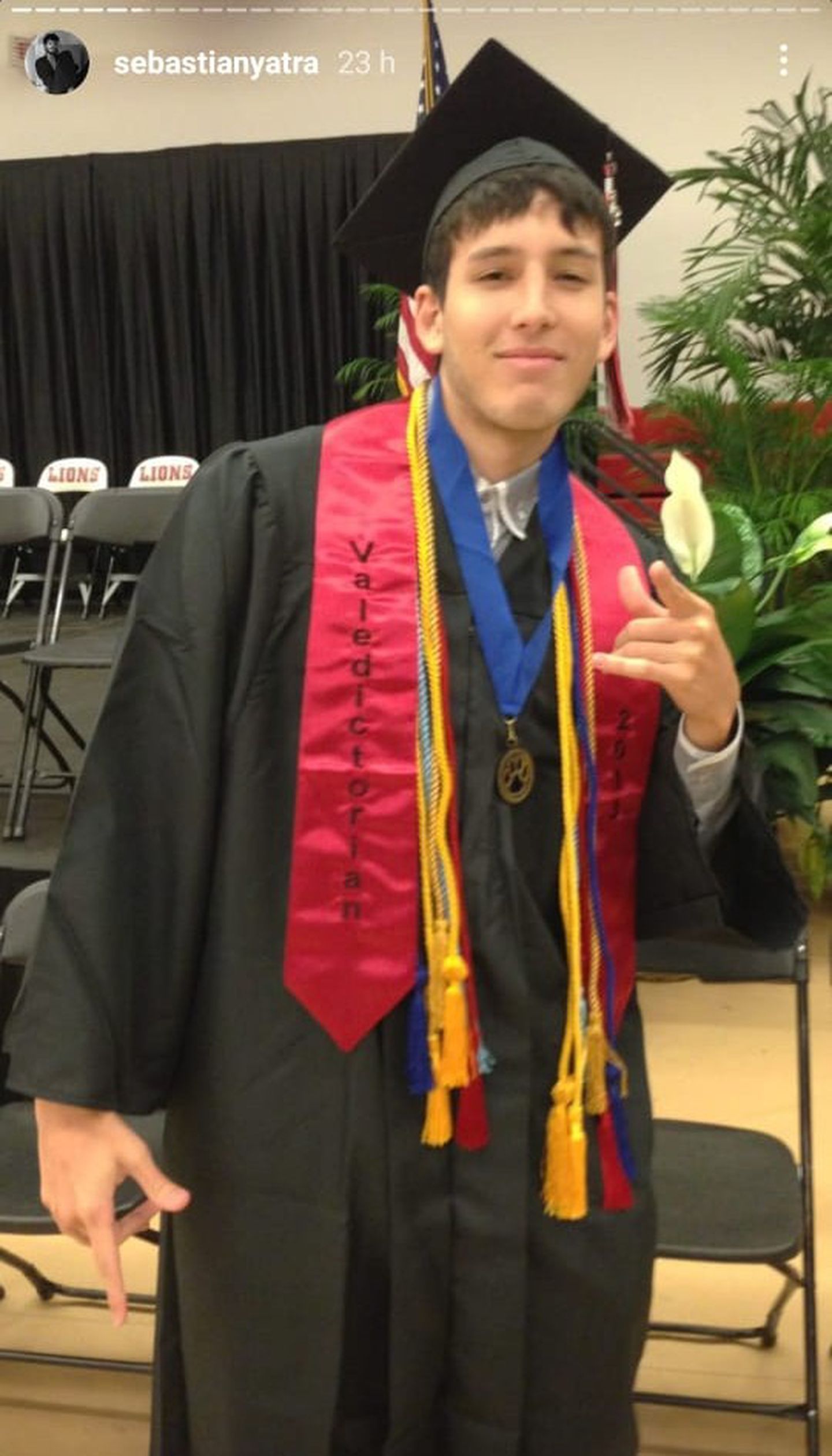 “Cuando saliste de la primaria :) saludos desde la ciudad de México” fue el pedido de su fans a lo que Sebastián Yatra compartió dos fotografías de la época del bachillerato. En las instantáneas se puede ver al oriundo de Medellín, Colombia sin su característica barba vestido con una toga y birrete negros y llevando una medalla.