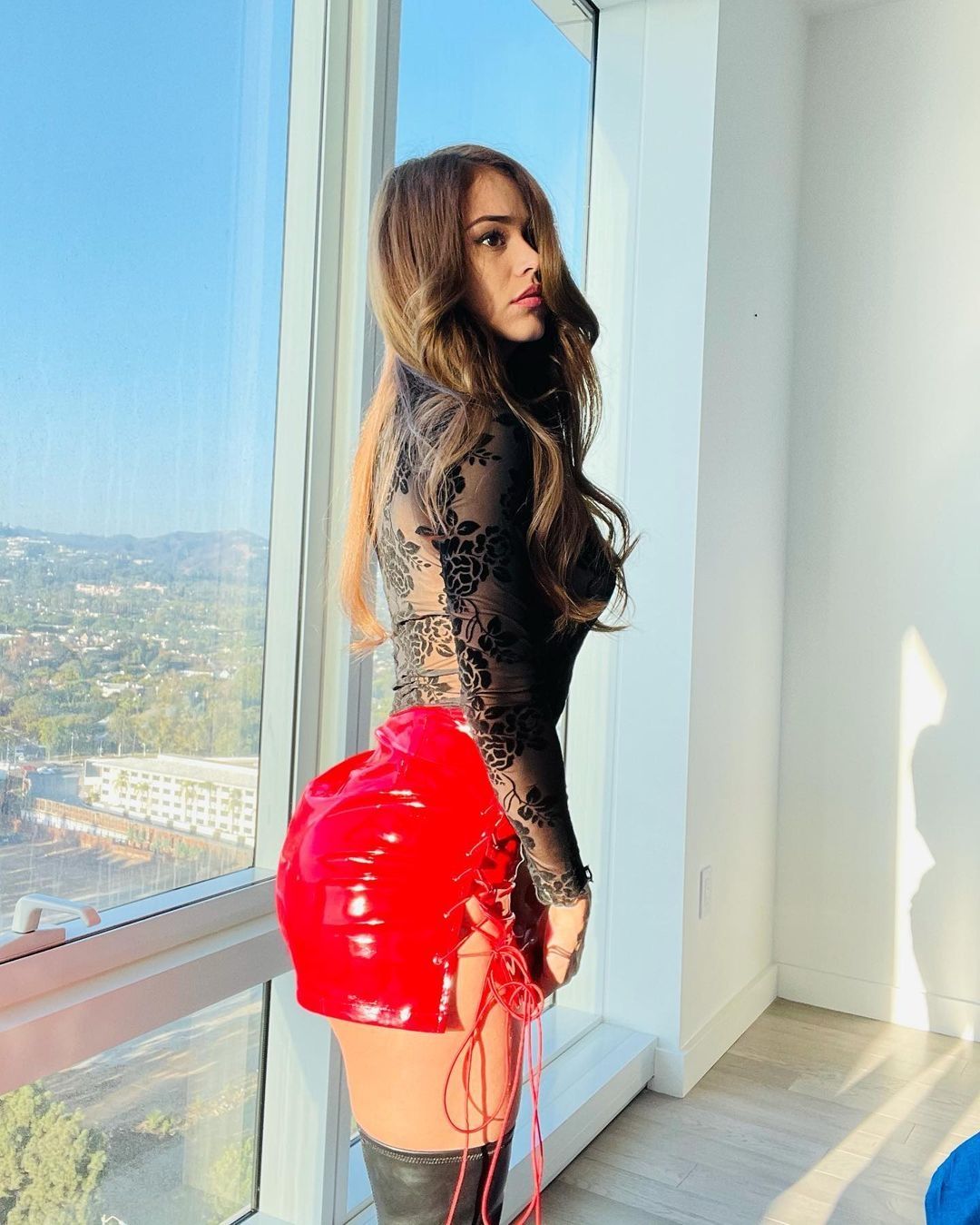 En las últimas horas, Yanet compartió una fotografía en su cuenta oficial de Instagram que se llevó todos los suspiros de sus millones de seguidores. En la misma se puede ver a ex chica del clima de la señal Televisa posado semi de espalda en una de las habitaciones de su departamento luciendo una falda acharolada de color rojo, botas bucaneras negras y una blusa con detalles transparentes.