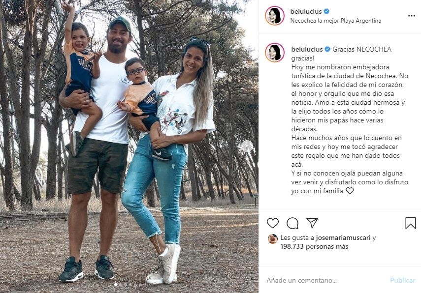 Ni bien se enteró que se quedaba afuera de la competencia, Belu armó las valijas y emprendió junto a su familia rumbo a Necochea, su ciudad natal, para tener un merecido descanso. Desde allí, se ha dedicado a compartir hermosas postales junto a sus pequeños y su marido.
