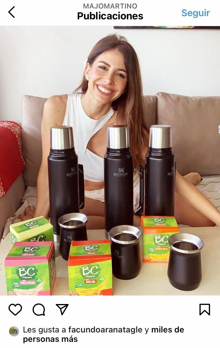 "Terminamos la semana con SORTEO", publicó ayer Majo Martino en su cuenta de Instagram y comentó que regalará un termo y mate de una de las marcas más reconocidas, de una empresa estadounidense. A esto le sumó una caja de jugos de una marca que la sponsorea.