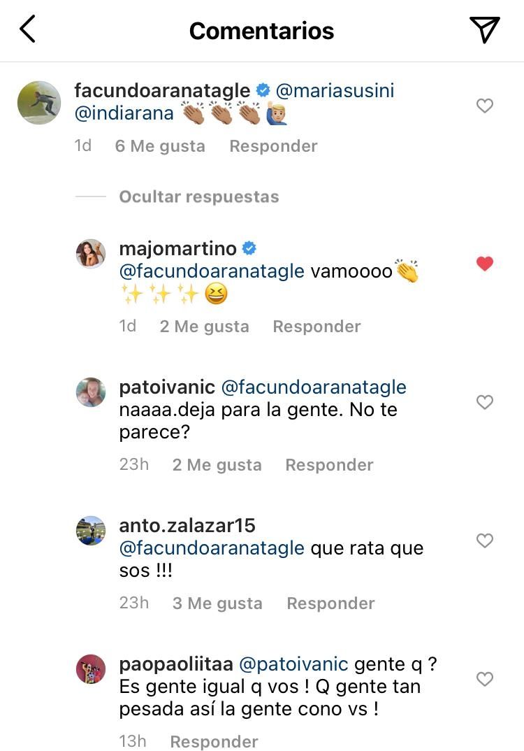 ¿Lo habrá hecho como un apoyo divertido para Majo o realmente tendrá necesidad de hacerse de alguno de esos premios? Lo cierto es que en el mismo posteo hubo quienes criticaron a Arana, como una usuaria que le dijo: "que rata que sos !!!".Pero también quienes lo defendieron: "Rata por qué? ¿Porque tiene el mismo derecho q vos de participación del sorteo? Rata se le llama a la gente como vos que quiere todo para uno mismo!"
