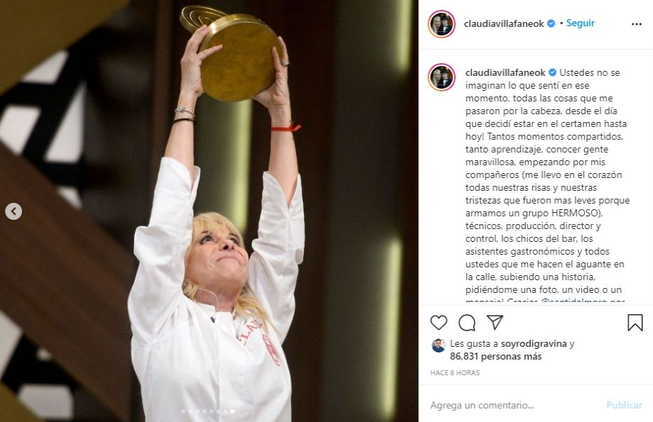 Claudia Villafañe se consagró campeona de Masterchef Celebrity. Este lunes por la noche la ex esposa de Diego Armando Maradona venció a Analía Franchín y se quedó con el trofeo y un premio de un millón de pesos.