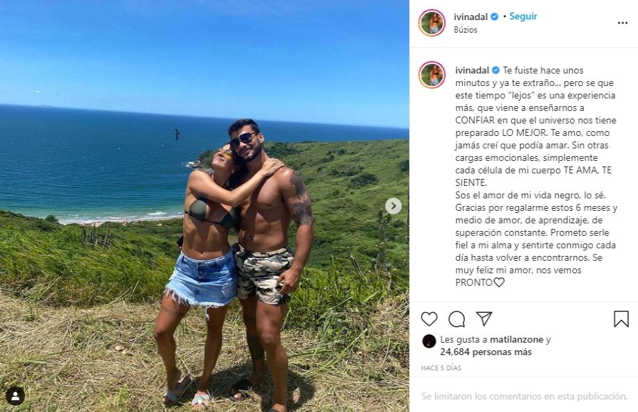 Y agregó: "Te amo, como jamás creí que podía amar. Sin otras cargas emocionales, simplemente cada célula de mi cuerpo TE AMA, TE SIENTE. Sos el amor de mi vida negro, lo sé. Gracias por regalarme estos 6 meses y medio de amor, de aprendizaje, de superación constante. Prometo serle fiel a mi alma y sentirte conmigo cada día hasta volver a encontrarnos. Se muy feliz mi amor, nos vemos PRONTO".