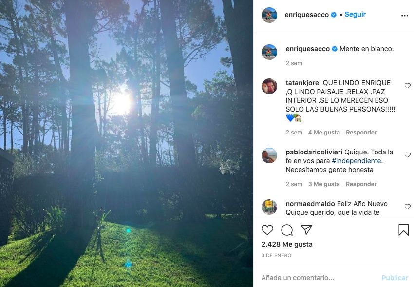 Enrique "Quique" Sacco viene de un 2020 muy agitado. Además de sus obligaciones laborales, estuvo aislado por haberse contagiado de coronavirus. Con las llegadas de las vacaciones, decidió tomarse unos días para viajar al sur argentino, acompañado por su pareja, María Eugenia Vidal. Su romance comenzó hace más de un año y desde entonces son inseparables.