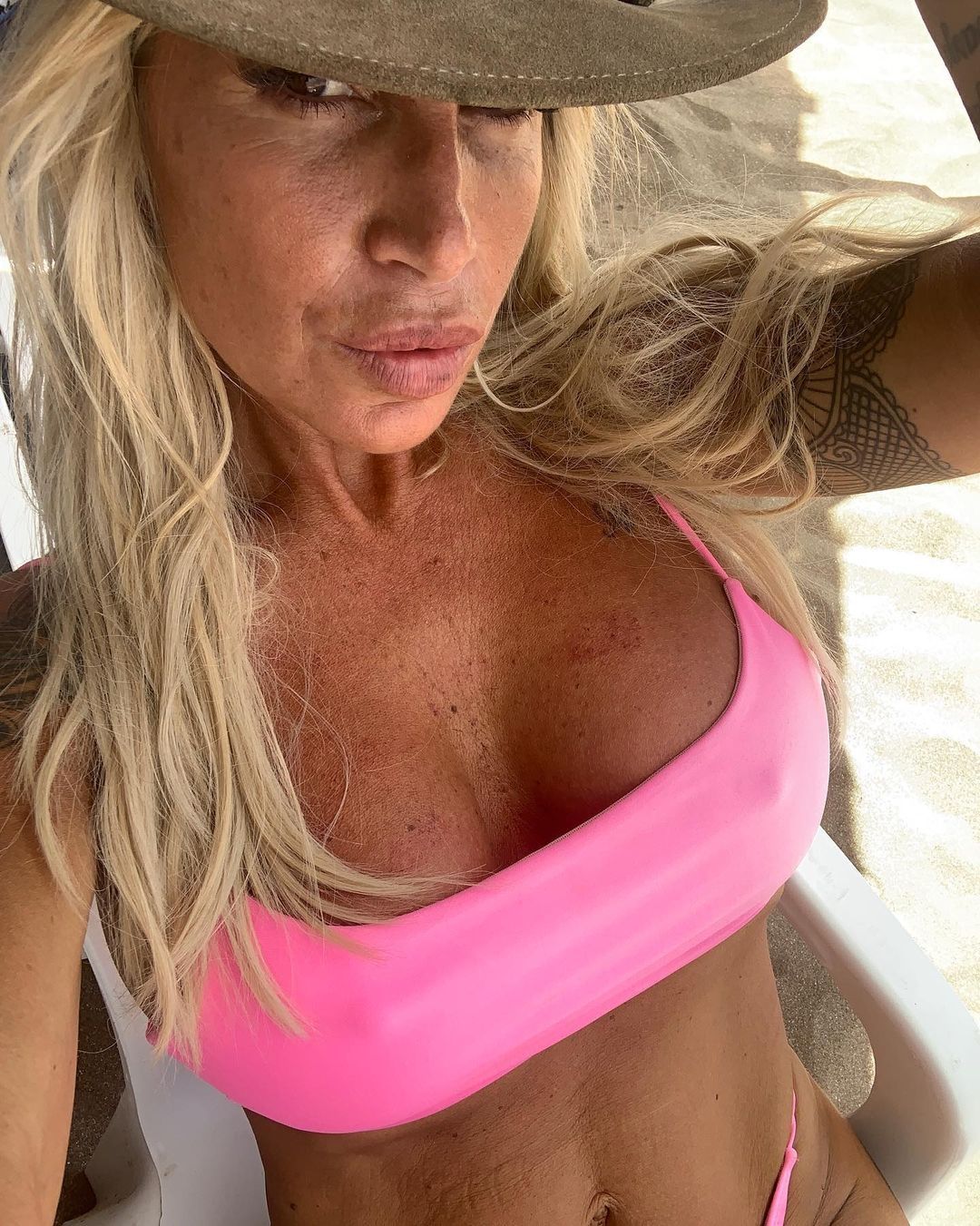 Ahora, bajo el sol, la actriz publicó unas selfies, vistiendo un sensual traje de baño fucsia. "Mamita sin filtro", escribió la conductora para acompañar las fotos.