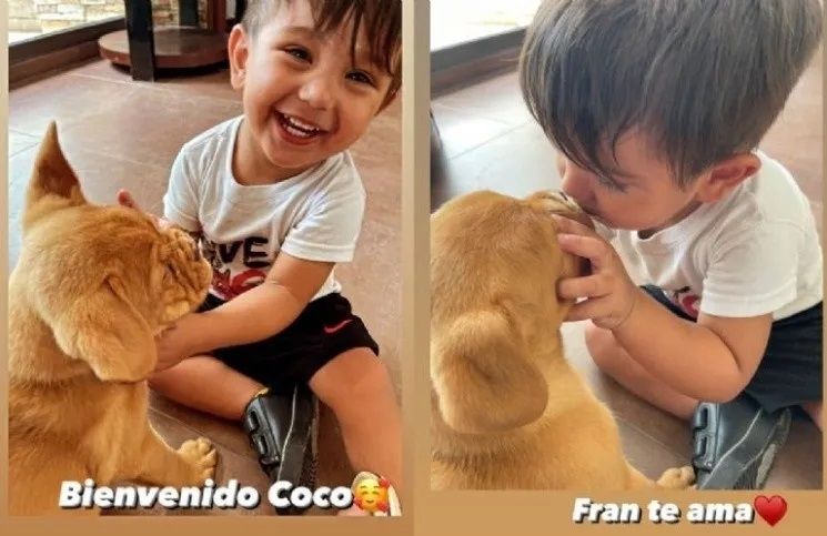 En su cuenta de Instagram, donde la siguen más de un millón de personas, la mediática compartió el emotivo momento del encuentro entre el can y su pequeño de casi dos años de edad. Es un adorable Shar Pei color caramelo de pocos meses. "Bienvenido Coco. Fran, te ama", escribió la flamante actriz.