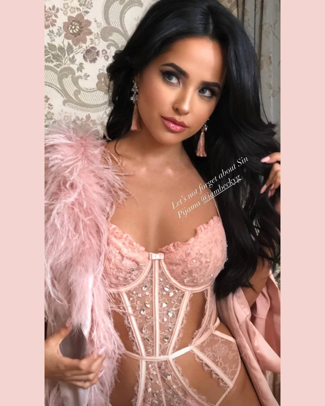 Finalmente en redes sociales, la hermosa morocha, posee una gran popularidad y debido a esto hace algunas horas atrás, en su perfil de Instagram, una fan page dedicada a la intérprete de "Sin pijama" compartió una foto de ella donde se la puede ver en primer plano luciendo ropa de encaje de color rosado. Claramente esta imagen dejó a todos sus fanáticos sumamente enamorados.