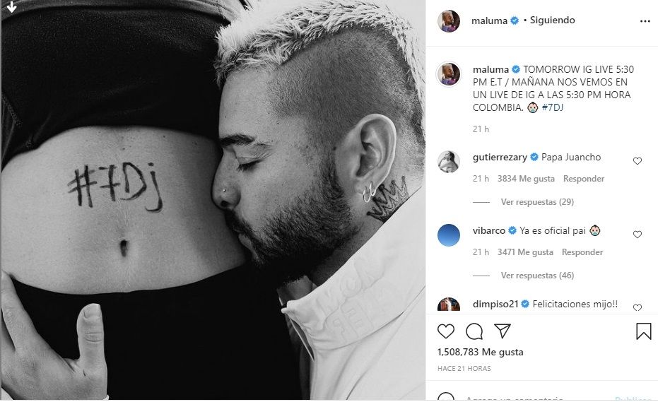 Esta vez no fue la excepción ya que hace algunas horas atrás, en su perfil de Instagram, Maluma compartió una imagen de él junto a un vientre femenino dando a entender que próximamente será padre. Sin embargo el misterio llegó a su fin ya que hoy a las 5.30 PM, hora de Colombia, el famoso cantante revelará el tan ansiado misterio.
