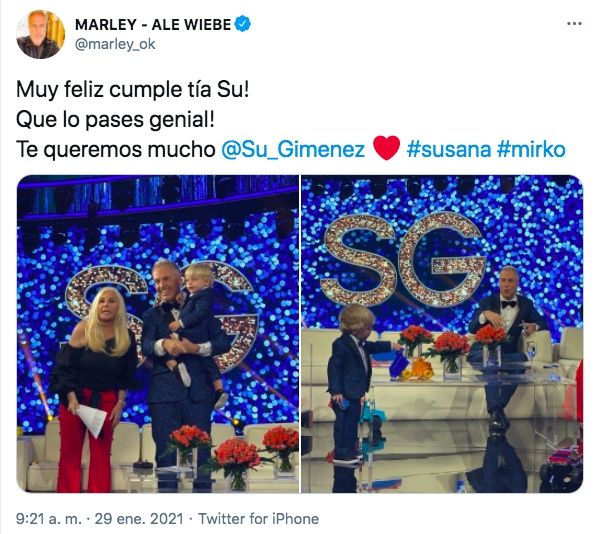 "Feliz cumple tía Su", expresó el hijo del conductor y enterneció a sus seguidores. Por otro lado, Marley también saludó en sus redes, a su amiga con una foto de los tres juntos.