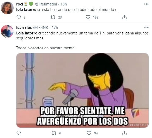 Al darse cuenta de la repercusión que estaban teniendo sus dichos, borró la publicación pero los usuarios ya habían hecho capturas de pantalla y en la web comenzaron a circular diversos memes burlándose de ella. Tini tiene más de 15 millones de seguidores en Instagram y casi 3 en Twitter, por lo cual, era difícil de que el contenido pasara desapercibido.