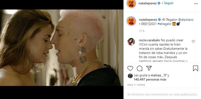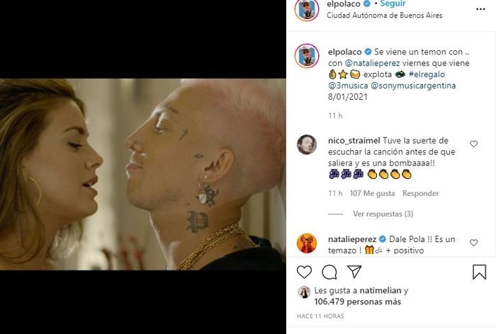 El músico, por su parte, eligió otra foto para promocionar en las redes sociales la canción y agregó: “Se viene un temón con Natalie Pérez. Viernes que viene explota”.