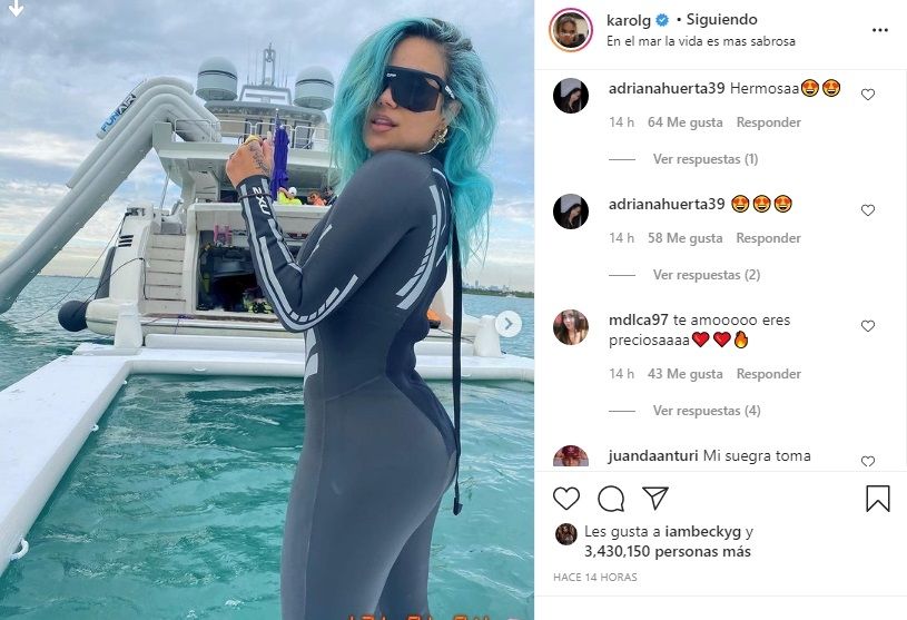 En tanto que hace algunas horas atrás en su perfil de Instagram, la intérprete de "Mi cama", compartió una serie de fotos de ella que donde se la ve con un traje de buceo que no sólo causó la reacción de Becky G sino que también dejó a todos sus seguidores de todas partes del planeta sin palabras.