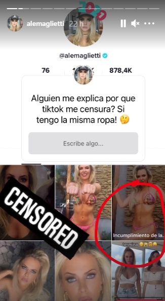Alejandra Maglietti fue una nueva víctima de la censura en las redes sociales. El sensual video, donde se la puede ver a la modelo bailando reggaetón en bikini, causó tanto furor que TikTok lo censuró.