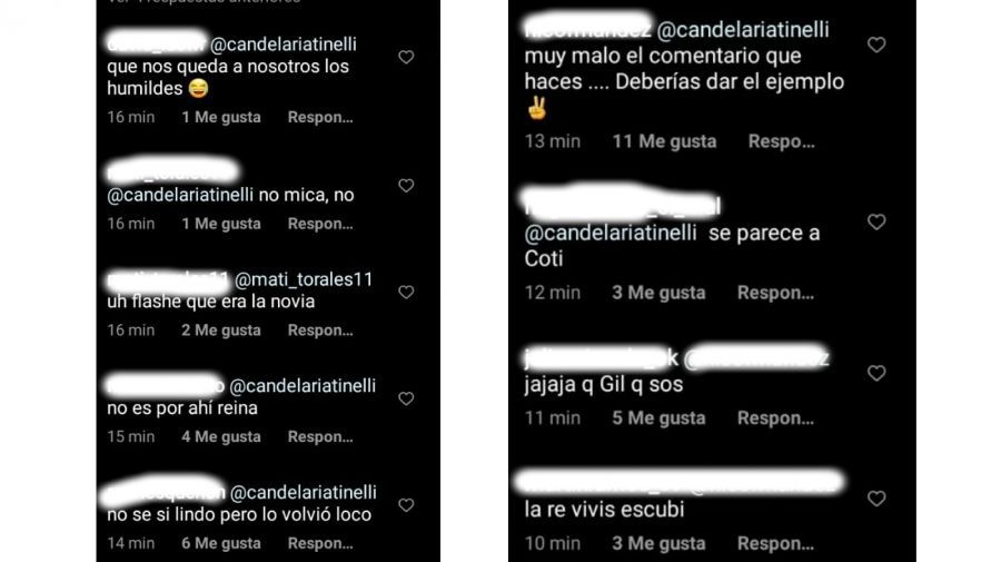 "No es por ahí, reina", escribió un usuario. "Decile al Licha que te haga la pata con el rubio ese", agregó otro. "Tá fachero, eh. Facherito", sumó otra persona a la catarata de mensajes. "Si te viera él, también pensaría lo mismo de vos", remató otra.