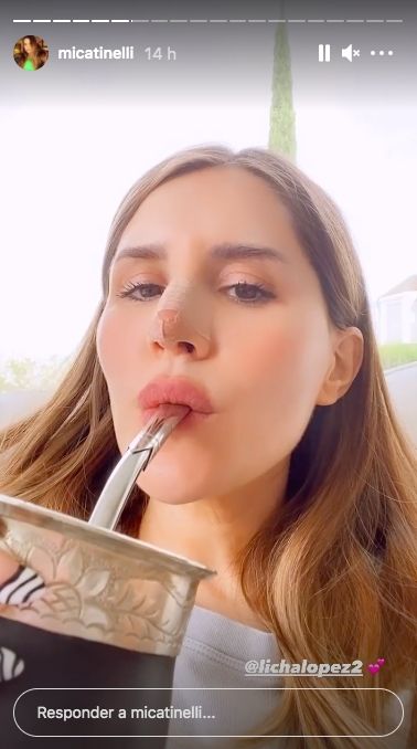 Micaela Tinelli compartió una historia en su Instagram para tranquilizar a sus más de dos millones de seguidores. "Hace un mes me operé de la nariz, de una cosa que tenía mal hecha. Hoy fui a la consulta y tengo una pequeña inflamación. Lo digo ahora porque por un mes me van a ver así, con las cintitas", aclaró la diseñadora.