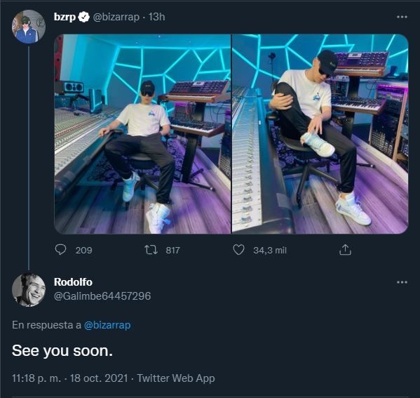 “See you son.” (en castellano, nos vemos pronto), publicó el histórico músico argentino en respuesta a un Tweet de Bizarrap en su estudio de grabación. El productor le dio me gusta a la publicación de Calamaro y la expectativa de los seguidores de ambos no tardo en aparecer.
