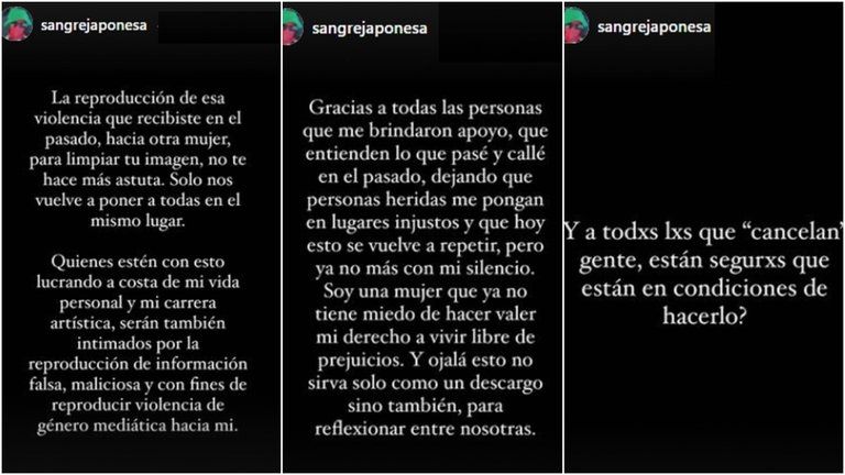 En el cierre de su comunicado, la artista sentenció: "Y a toxs lxs que "cancelan" gente, están segurxs que están en condiciones de hacerlo?"
