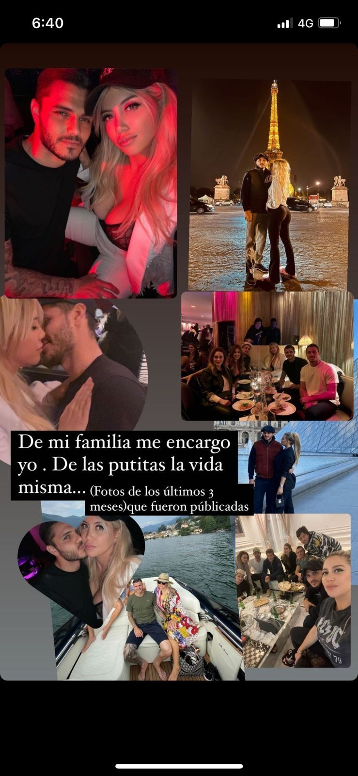 Sin bajar los decibeles, la mediática redobló la apuesta con un fuerte posteo tras el comunicado de la artista. "De mi familia me encargo yo, de las pu... la vida misma", escribió Wanda Nara.