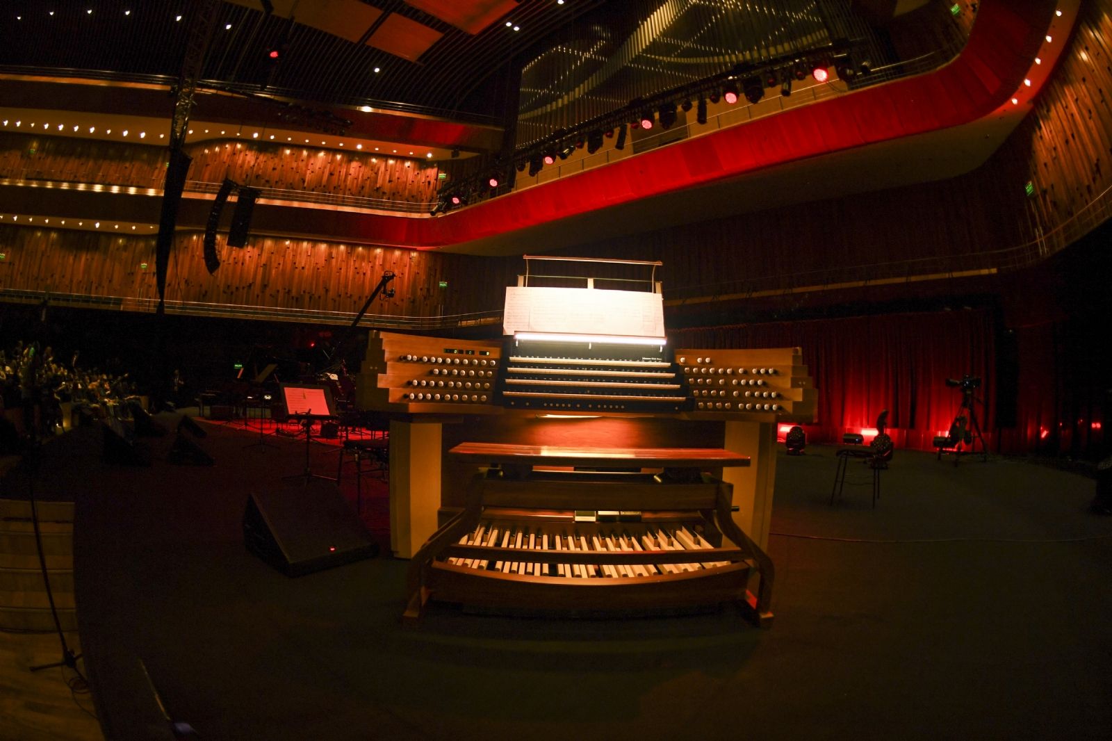 El imponente concierto iniciaba hoy con una orquesta de cámara de tres violines, dos violas, dos cellos, contrabajo, órgano, flauta, clarinete, corno, percusión y piano, a cargo de Carlos Britez en la dirección musical.