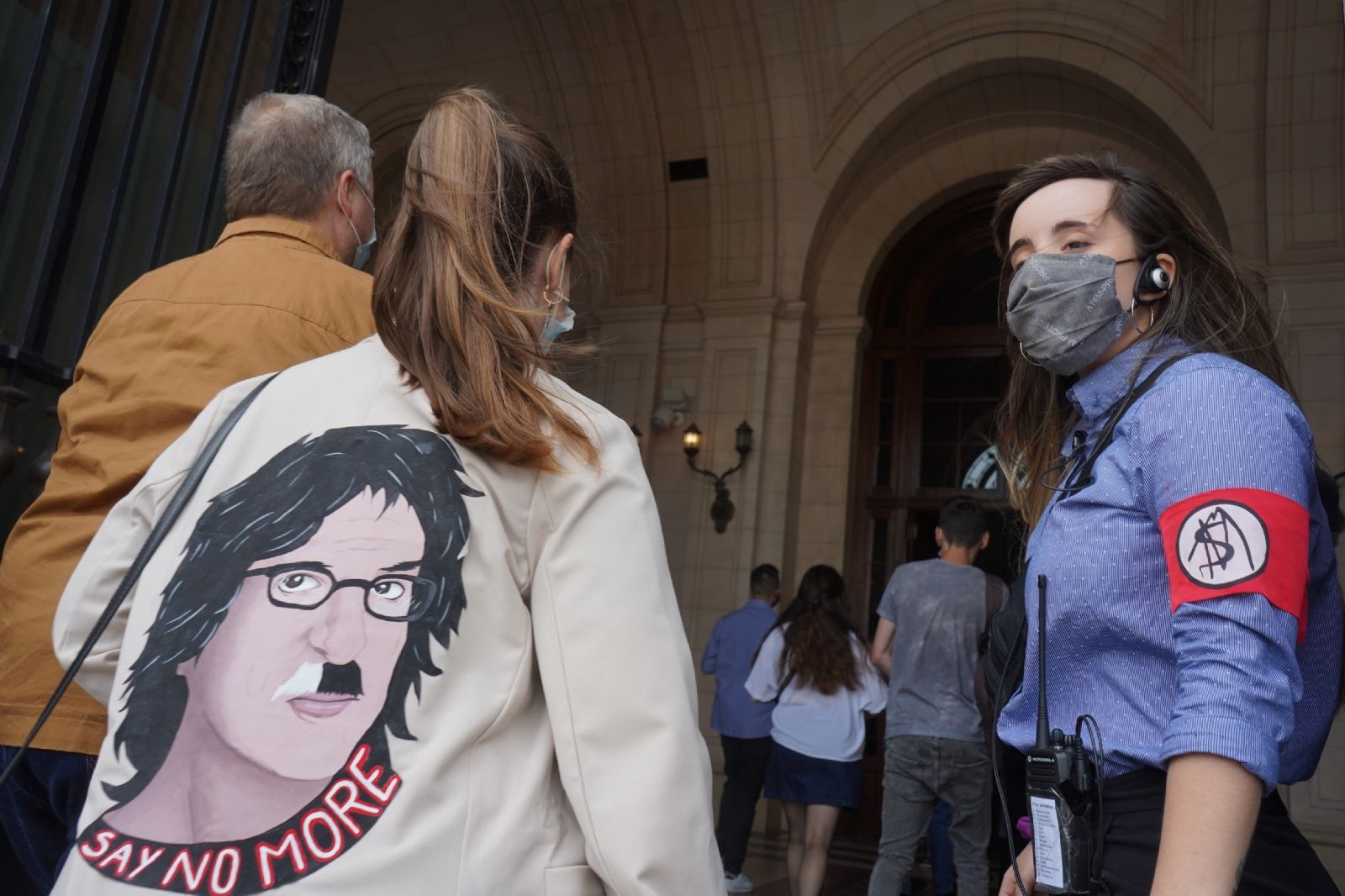 Decenas de los ya clásicos brazaletes con la leyenda "Say No More" pueden verse en medio de una organización cuidada y atenta, con asistentes de todas las edades, algunos en grupos familiares.