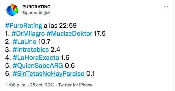 Este lunes volvieron a confirmarse los liderazgos del prime time que se vienen dando en las últimas semanas. Lo más visto del día fue la ficción turca Doctor milagro (Telefe) que registró un pico de 17.5 puntos de rating, cifras importantes que ubican al producto importado por encima de las grandes apuestas de la televisión nacional.