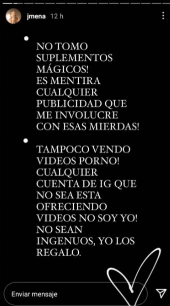 En este sentido, en su último posteo también denunció que su nombre y figura aparece en varias cuentas de redes sociales para vender productos para adelgazar. "No tomo suplementos mágicos. Es mentira cualquier publicidad que me involucre con esas mierdas", escribió en su descargo la cantante.
