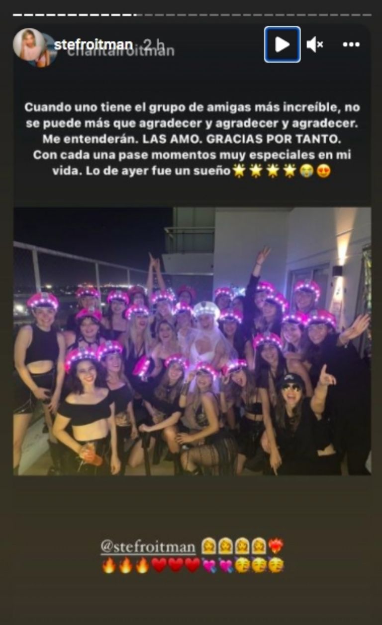 Ya con todo preparado, Stefi celebró a finales de octubre su despedida de soltera en Argentina, aprovechando el fin de semana de Halloween, para celebrarlo con sus amigas. En las imágenes que compartió en sus redes sociales, la actriz se vistió de blanco con un traje muy sensual y su grupo la acompañó con atuendos en negro.