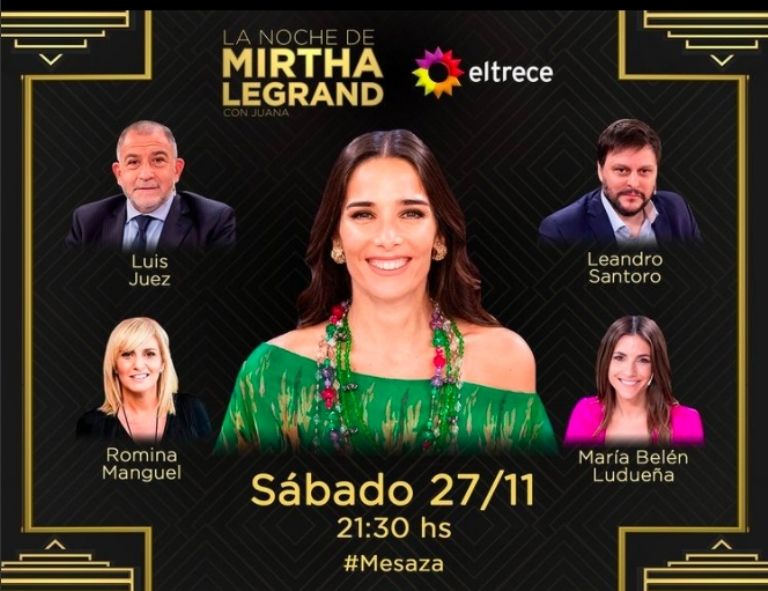 Por su parte, en La Noche de Mirtha, Juana contará con la presencia del diputado Luis Juez, el diputado electo Leandro Santoro y las periodistas Romina Manguel y María Belén Ludueña.