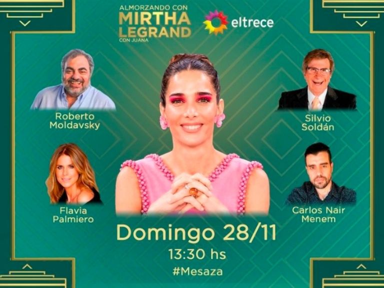 Finalmente, el domingo 28 de noviembre en Almorzando con Mirtha Legrand, Juanita contará con la visita del mítico conductor Silvio Soldán, el actor y humorista Roberto Moldavsky, la actriz Flavia Palmiero y Carlos Nair Menem.