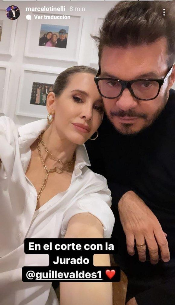 Fue el conductor quien compartió a través de sus stories de Instagram la imagen junto a su pareja, mostrándose super relajados en la intimidad del camarín previo a salir nuevamente al aire. "En el corte con la jurado", escribió Marcelo junto al emoji de corazón rojo.