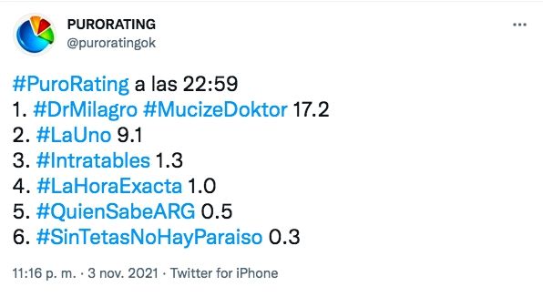 Este miércoles volvieron a confirmarse quiénes son los líderes indiscutidos de la audiencia en la televisión abierta nacional. Los resultados del rating volvieron a dar como el gran ganador del día a Doctor milagro (Telefe), que registró un pico de 17.2 puntos de rating.