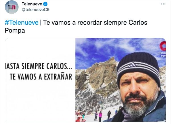 Por su parte, desde las redes sociales de Telenueve también expresaron su dolor: "Te vamos a recordar siempre Carlos Pompa. A los 56 años murió Carlos Pompa. Trabajó 20 años en Canal 9, cubriendo notas y móviles para Telenueve. Sus compañeros y compañeras de las diferentes ediciones del noticiero del canal te vamos a recordar con mucho cariño".