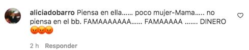Algunos fueron un poco más allá, directamente compartiendo mensajes ofensivos. "Piensa en ella…… poco mujer-Mamá….. no piensa en el bb. FAMAAAAAAA…… FAMAAAAA ……. DINERO", disparó otra usuaria.