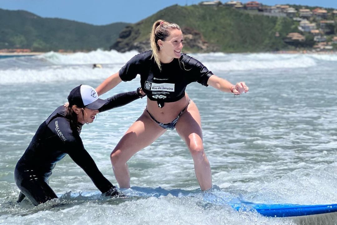 Mica Viciconte se encuentra disfrutando de unas merecidas vacaciones en Brasil. Junto a Fabián Cubero y sus tres hijas, la familia ensamblada se relaja en las playas de Buzios. Entre las diferentes actividades que desarrollan, este fin de semana la ex Combate decidió tomar clases de surf. La modelo compartió algunas fotos sobre la tabla y expresó su alegría.