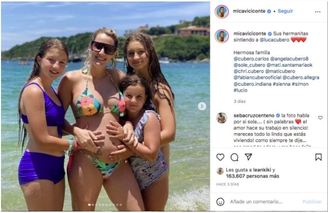 En este contexto, Viciconte siente la pulsión de exhibir al mundo el desarrollo de sus vacaciones y sobre todo para mostrar el avance de su pancita, el crecimiento de Luca, el niño que llegará en breve para cambiar para siempre la vida de esa pareja que configura con Cubero.