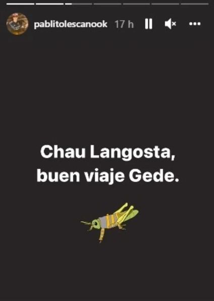 Tras la publicación, su hermano publicó un misterioso mensaje que para muchos fue una respuesta al anuncio que realizó su hermana minutos antes. "Chau langosta. Buen viaje Gede", señaló el cantante.