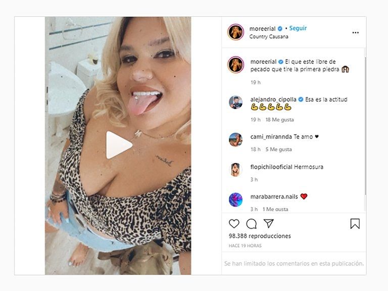Y este miércoles, finalmente rompió el silencio la protagonista de este escándalo. En su cuenta de Instagram, Morena lanzó una enigmática frase: “El que este libre de pecado que tire la primera piedra”, escribiójunto a un emoji de manos arriba y se mostró sacando la lengua.