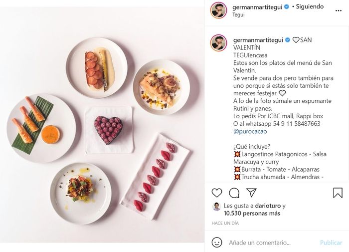 Martitegui aclaró qué trae la caja en uno de sus posteos. Ahí también aclaró que se vende para dos, "pero también para uno porque si estás solo también te merecés festejar".