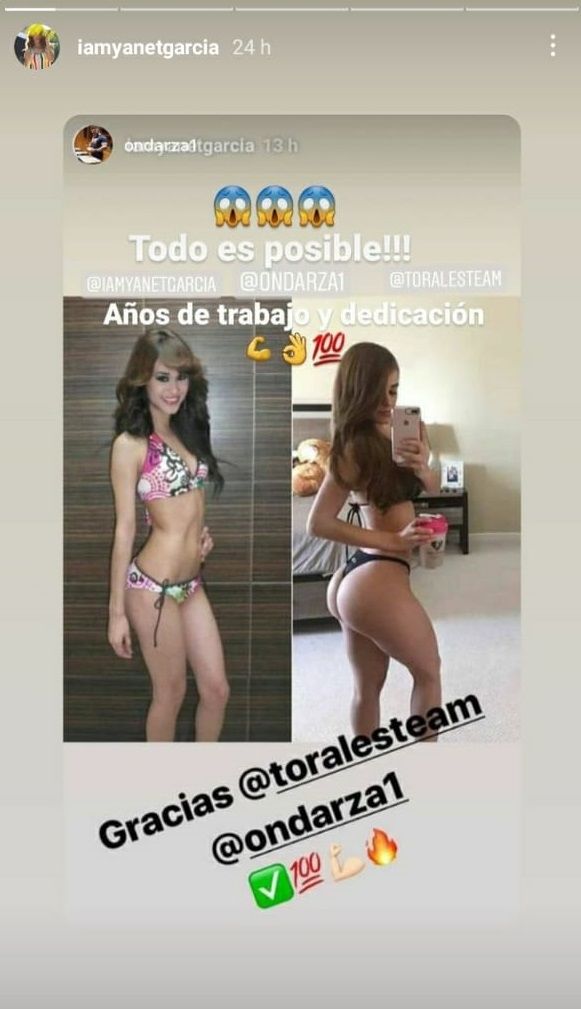 Por otra parte y fiel a su estilo la hermosa Yanet compartió en una de sus historias de su cuenta oficial de Instagram una historia donde se puede ver una gran comparación entre el antes y el después que sufrió su cuerpo luego de años de riguroso entrenamiento físico. Además a dicha fotografía le agregó el siguiente comentario: "Todo es posible. Años de trabajo y dedicación".